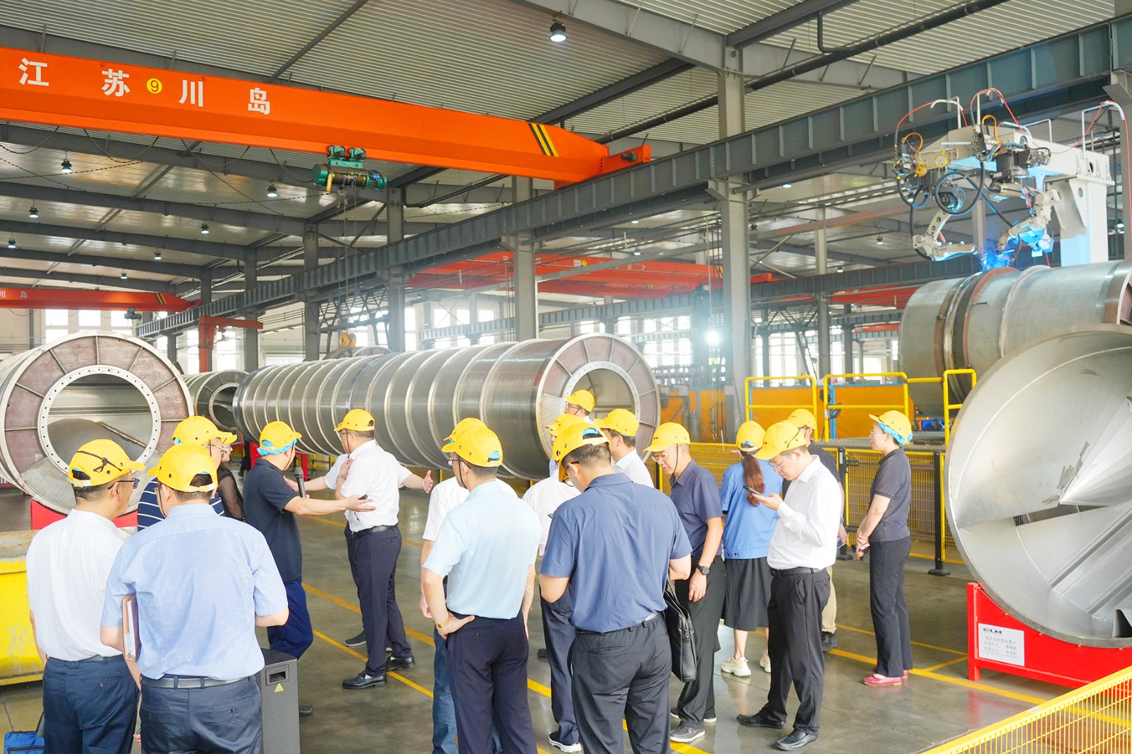王市長(zhǎng)一行深入生產(chǎn)一線,參觀了智能柔性鈑金車(chē)間、機(jī)器人焊接車(chē)間、自動(dòng)化設(shè)備裝配車(chē)間,觀看了川島所生產(chǎn)的洗衣龍、熨燙線等智能化洗滌設(shè)備的運(yùn)行視頻,仔細(xì)聽(tīng)取關(guān)于我司焊接生產(chǎn)線智能化技改項(xiàng)目、機(jī)加工生產(chǎn)線智能化技改項(xiàng)目的推進(jìn)情況,以及采用ERP、MES等數(shù)字化管理系統(tǒng),在實(shí)際生產(chǎn)管理中的協(xié)同應(yīng)用。