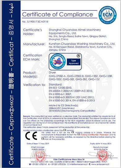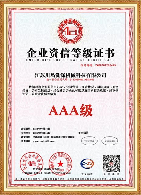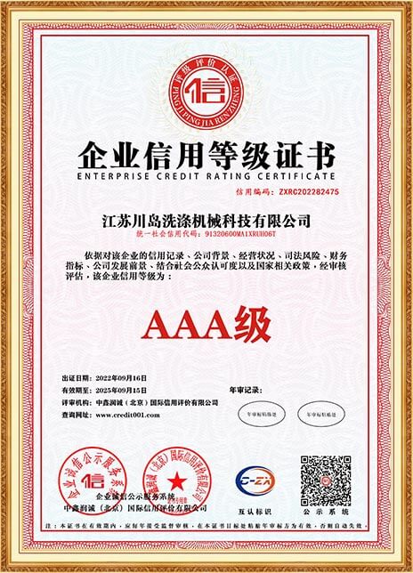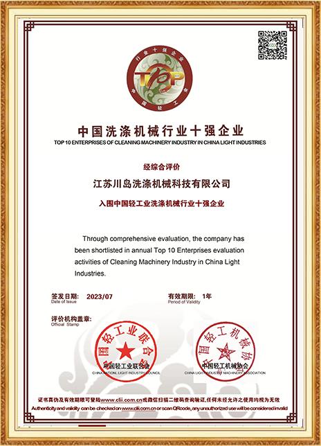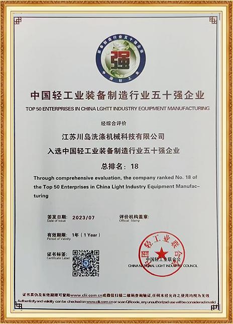 川島近年來獲得多項(xiàng)權(quán)威標(biāo)準(zhǔn)和認(rèn)證,諸如中國(guó)洗滌機(jī)械行業(yè)十強(qiáng)企業(yè),中國(guó)輕工業(yè)裝備制造行業(yè)五十強(qiáng)企業(yè),AAA級(jí)信用企業(yè),韓國(guó)KC、歐盟KC證書,多項(xiàng)國(guó)家專利等。
